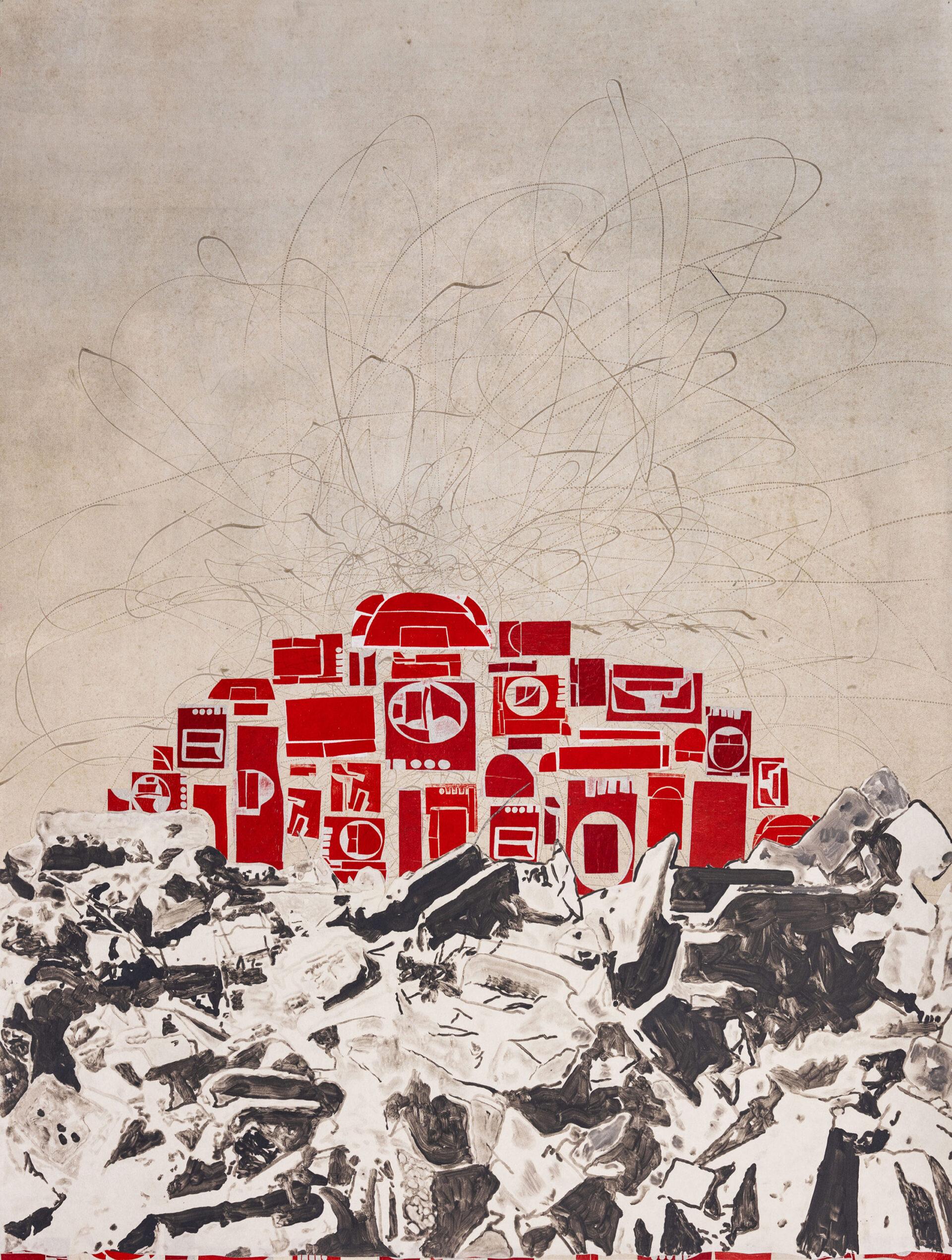 No vestige of a beginning no prospect of an end, 2025. Collagraph, printed collage, archival inkjet, monotype on Evolon.